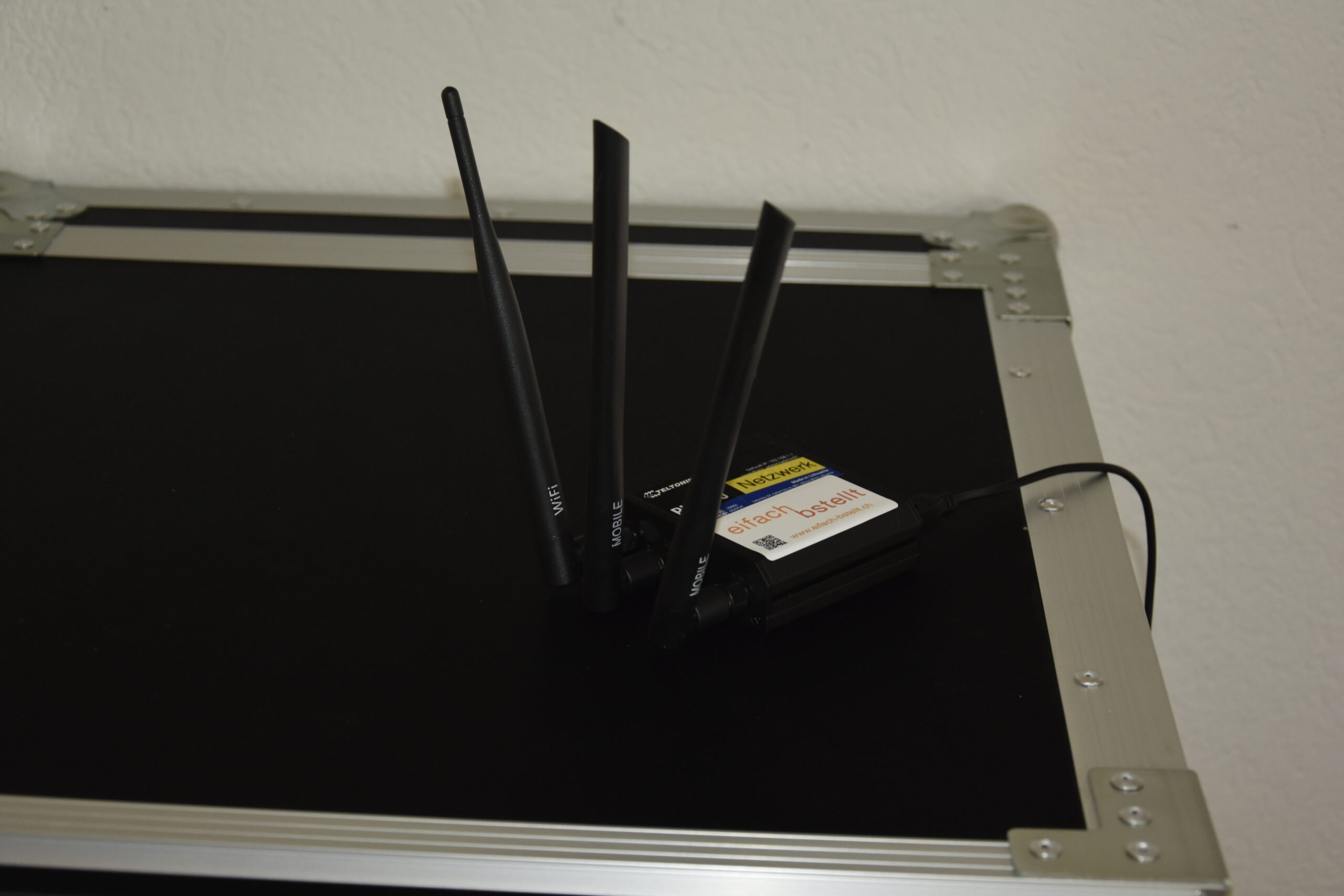 4G (LTE) Router mit SIM Karte für mobilen Internetzugriff mit Geschwindigkeiten bis zu 150 Mbps. Verbindung zu Router kann per Kabel oder über das integrierte WLAN aufgebaut werden.